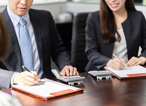 - 経営者に万が一のあった場合はもちろん、それ以外にも、会社は日々、様々なリスクと戦い、自身の発展のための対策を迫られています。当社は保険活用での効率的な資金準備という側面から会社発展のお手伝いをしています。