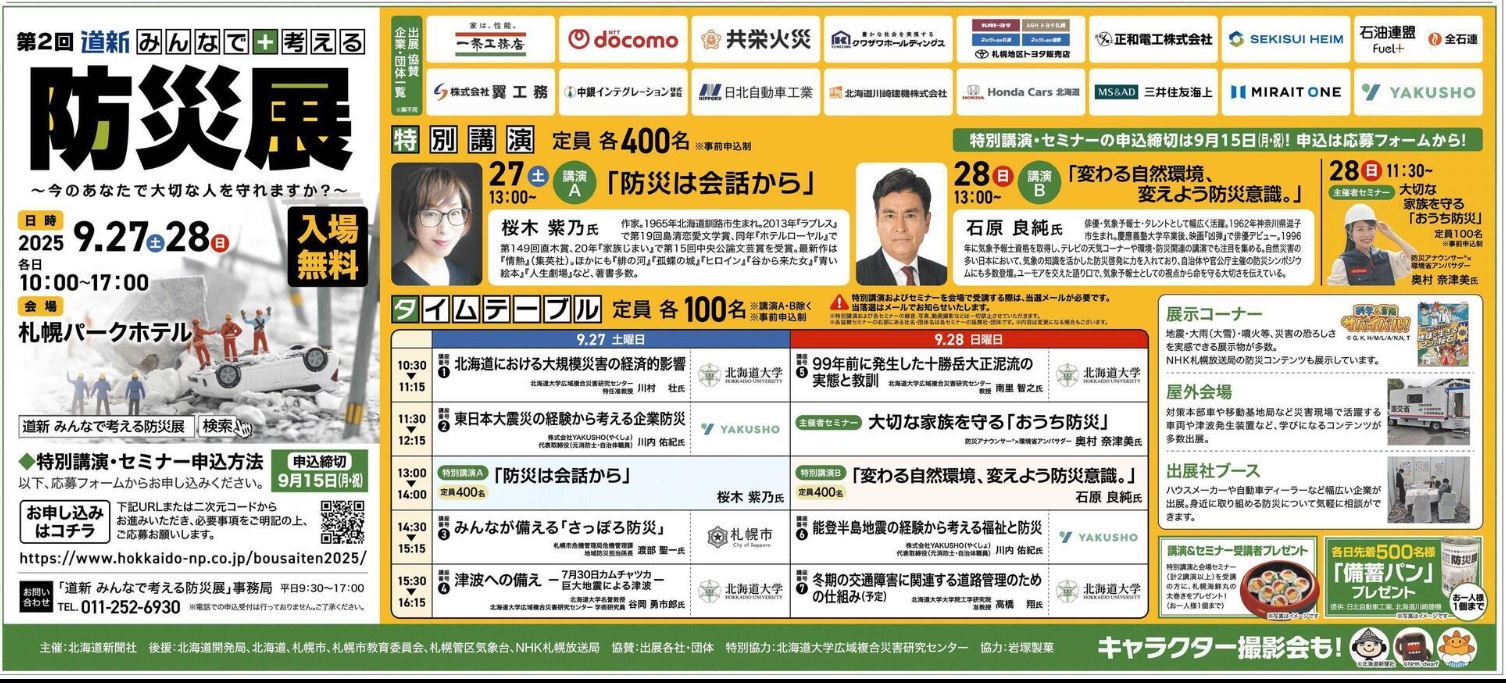 2025年9月27日(土)・28日(日)に開催される、北海道新聞社主催の防災イベント